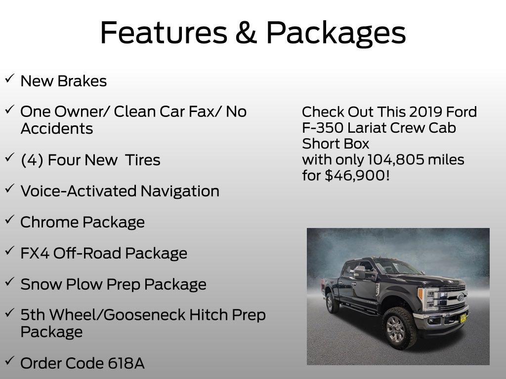 Don't miss your chance to experience the uncompromising capability and premium features of this 2019 Ford F-350SD Lariat. Visit our showroom today to take it for a test drive and see how it can transform the way you work and play.