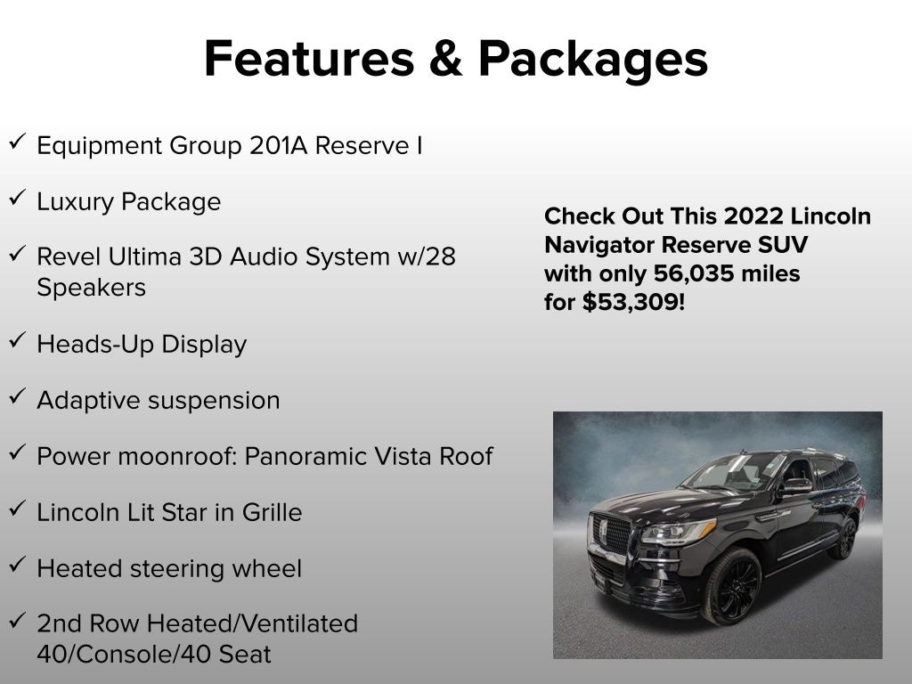 This 2022 Lincoln Navigator Reserve is not just a vehicle; it's a statement of luxury and style. With its impressive array of features and unparalleled attention to detail, it's the perfect choice for those who demand the best.