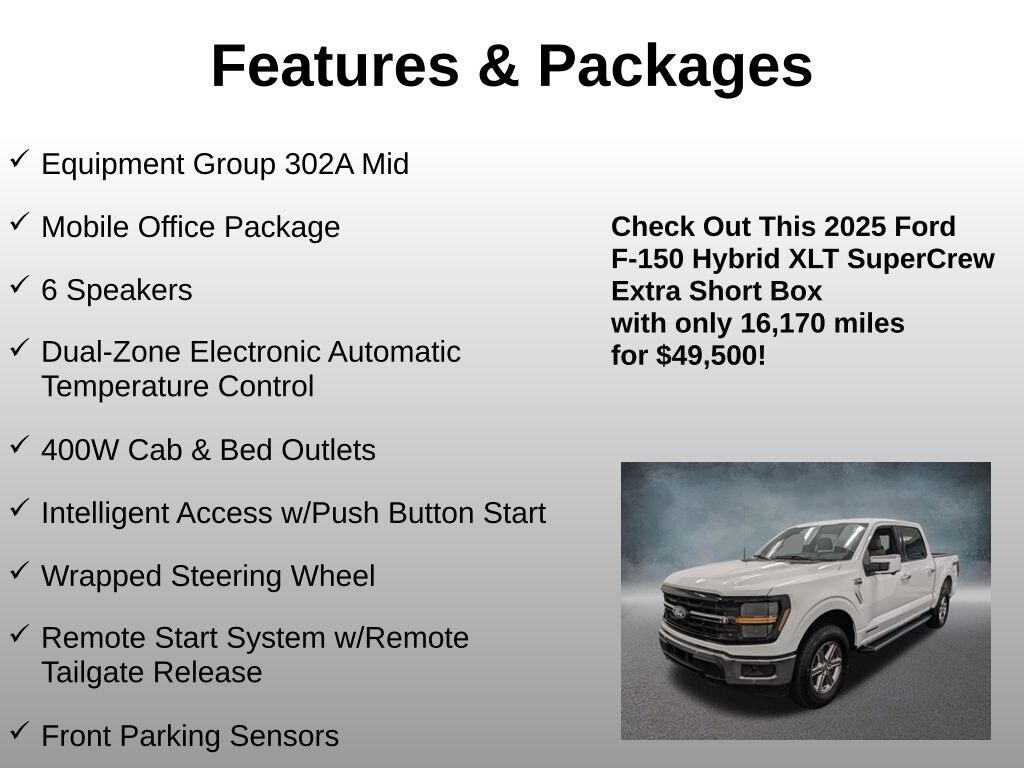 Discover the ultimate in power, capability, and connectivity with this exceptional 2025 Ford F-150 XLT. Meticulously maintained and boasting a stunning white exterior, this truck is ready to elevate your driving experience.